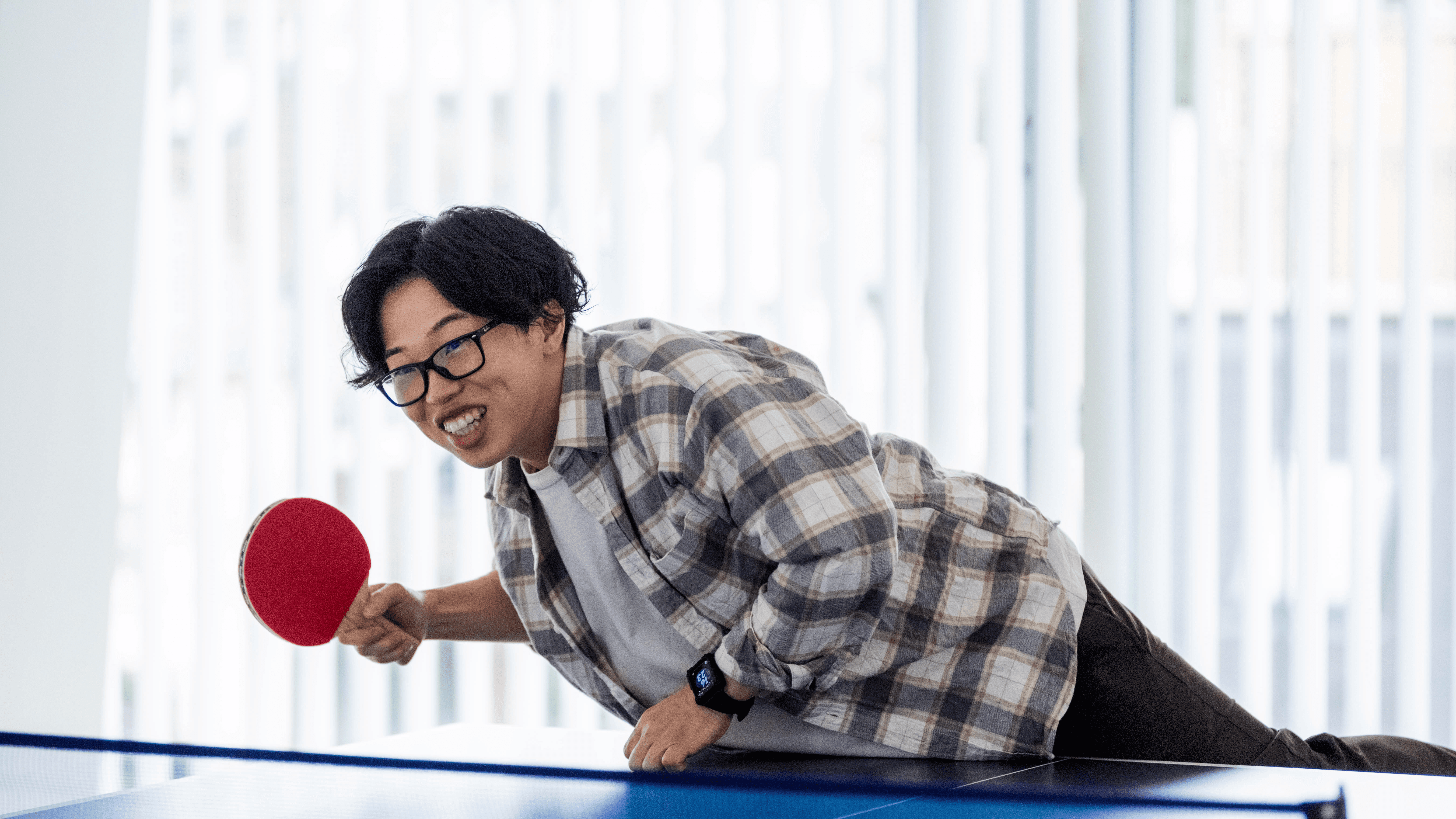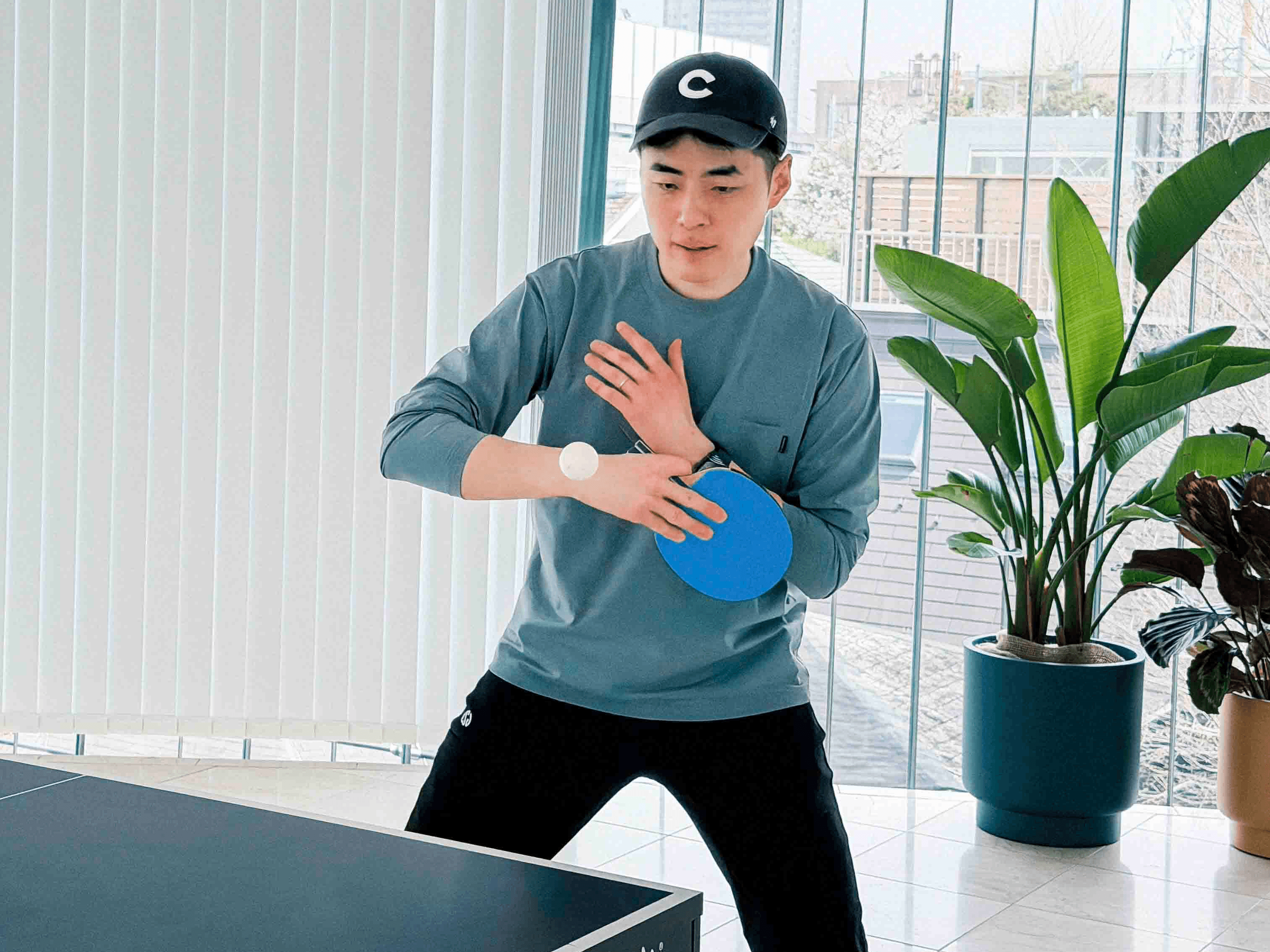 Pro-level ping-pong facilities, simple workout equipment, and showers for a healthy body and mind.